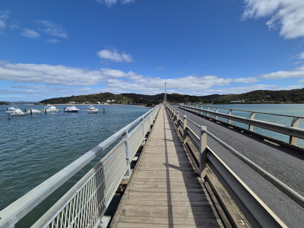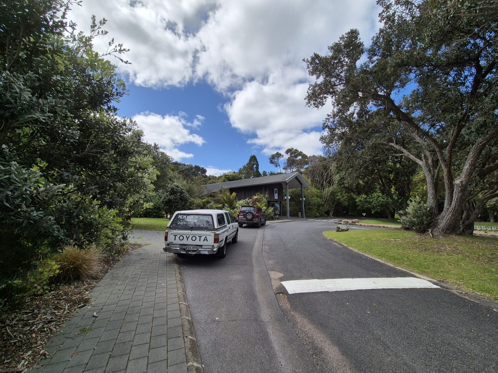 Nu kunne det ikke udsættes længere. Jeg vinkede til de vandrevenner, som blev tilbage på Lodgen og krammede Victoria farvel. Da jeg stadig var bagud på ‘lækker mad’ gik jeg en omvej hen forbi Superbowl. Den lå tættere på ruten end alle caféerne i centrum. Lørdagslukket! Æv! Tiden var ved at rende fra mig, så jeg lovede mig selv en sen frokost på museet i Waitangi. Jeg havde ikke tid til at gå ind til byen.