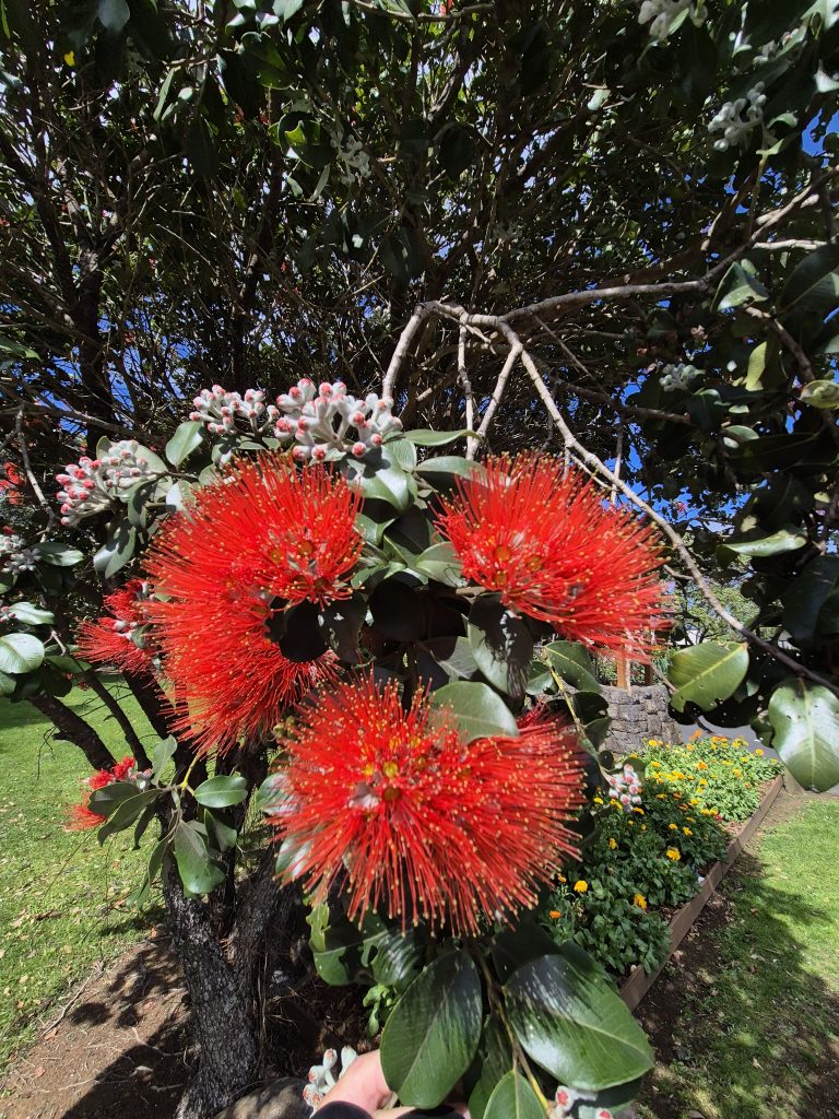 Efter grusvejen kom der en velplejet asfaltvej og en golfbane. Her fra kunne jeg se flaget på The Treaty Grounds museum. Vandrestavene havde arbejdet i takt til rytmen: RES TAU RAN TE RES TAU RAN TE. Det fungerede bedst på spansk! Tanken om at få mad serveret satte lidt fut i den vandredag, som havde udsat min zero. ‘Zero’ er betegnelsen på en fridag. En dag med nul kilometer.