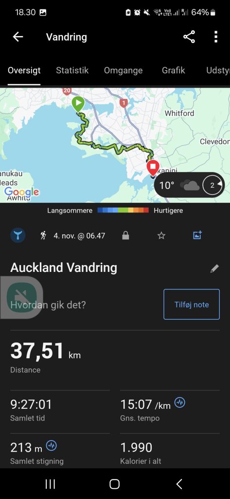 I dag har jeg gået fra km 618 til km 651. Jeg er dog lidt uden for ruten, men km 651 er det nærmeste mærke. Det er derfor nærliggende at tro, at jeg har gået 33 kilometer. Men den regnestok fungerer sjældent. Mit ur målte turen til 37,5 kilometer.