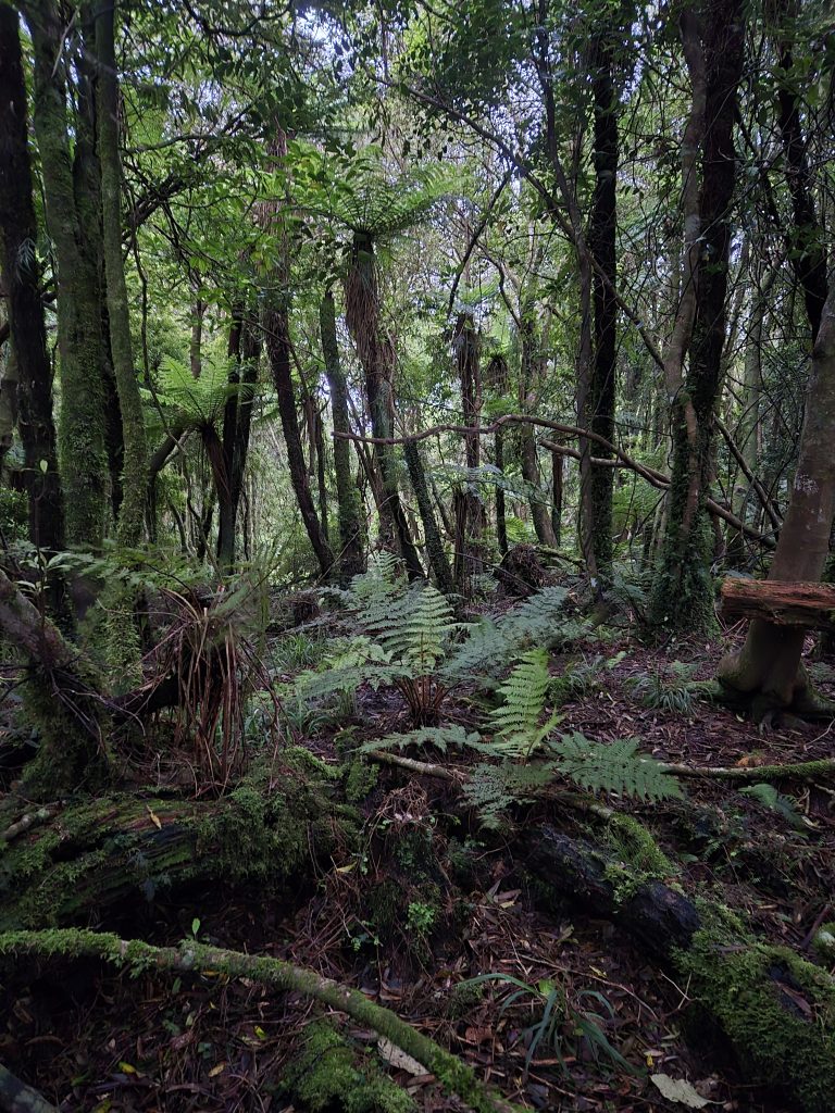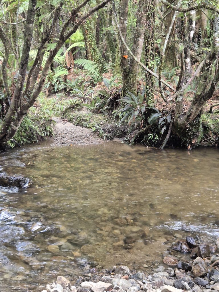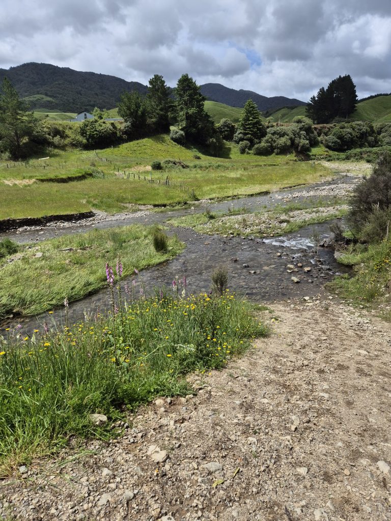 Efter cirka tyve vandture var jeg ude af skoven. Der kom fem kilometer gennem privatejet skov og eng. Der var fint og grønt. Jeg mødte en stor gruppe børn, som var på ophold hos Makahika Outdoor Pursuit Centre. De tilbyder læring for børn.