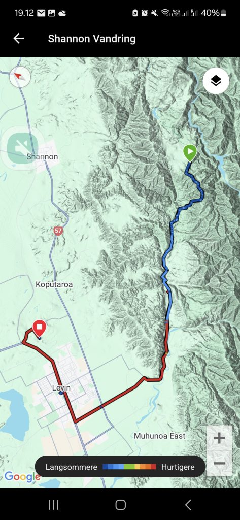 Jeg nåede ikke til opsamlingsstedet før Donna dukkede op på vejen. Hun havde datteren med i bilen. Vi kørte om supermarkedet og videre til Donnas hjem, som ligger fem kilometer uden for byen. Her har jeg fået et fint værelse, taget bad, vasket tøj, rystet og luftet telt mm. Jeg er inviteret på aftensmad og i morgen kører Donna mig til bussen. Jeg tager bussen til byen på den anden side af Tararuas og fortsætter vandringen dér. Jeg krydser fingre for, at det bliver muligt at gennemføre Tararuas inden jeg forlader Nordøen.