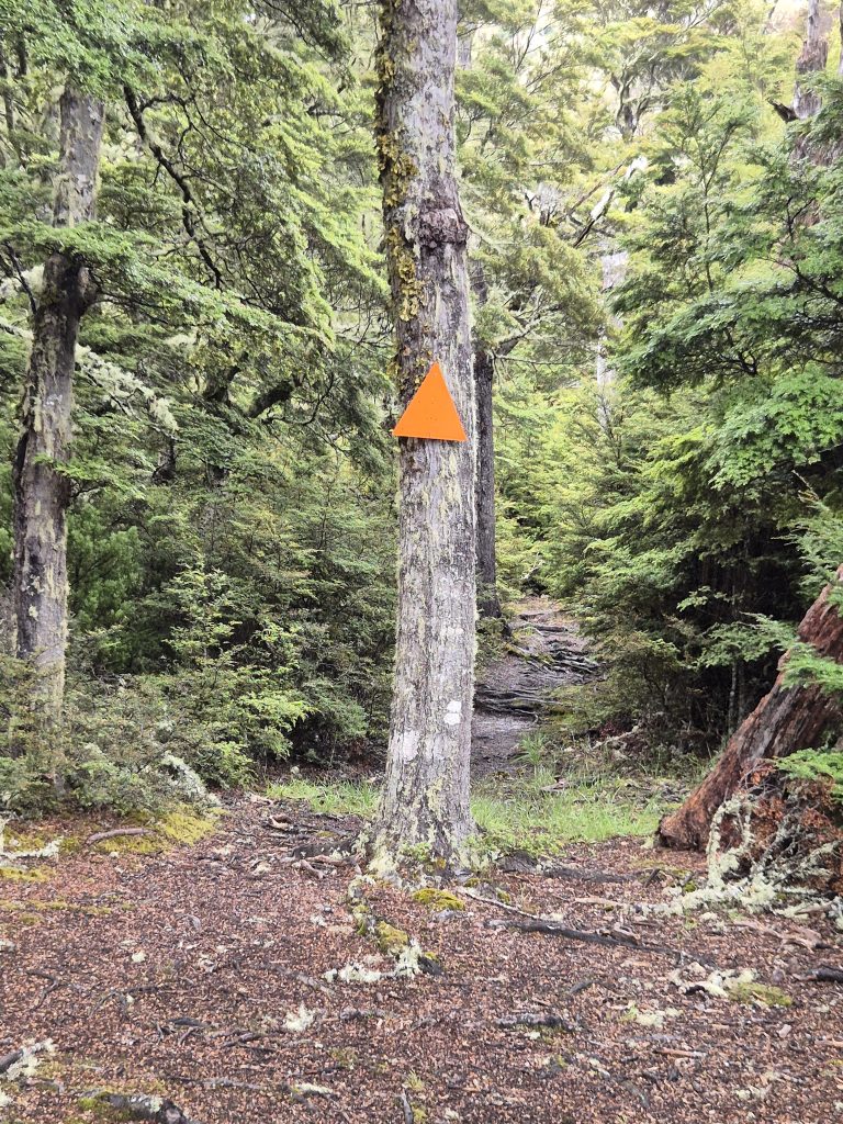 Efter sadlen snoede stien sig nedad gennem skoven igen. Denne gang ned til Boyle River, som ruten fulgte helt til Boyle Flat.