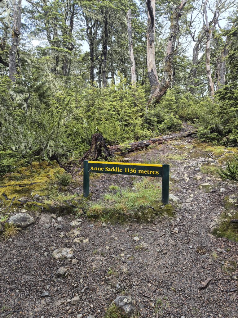 Efter et par timer skulle jeg kravle op gennem skoven til Anne Saddle. Det var en overkommelig stigning, som sluttede på en lille top i 1136 meters højde. Der var smukt og stille og jeg holdte en pause. Jeg mødte ikke en eneste vandrer på dagens atten kilometer. De fleste dage mødes man sporadisk når nogen holder pause eller hvis der kommer modgående trafik.