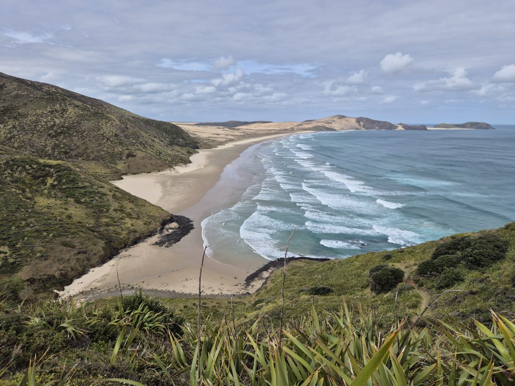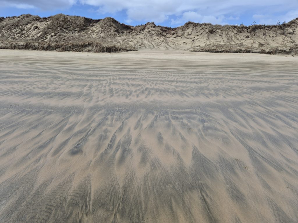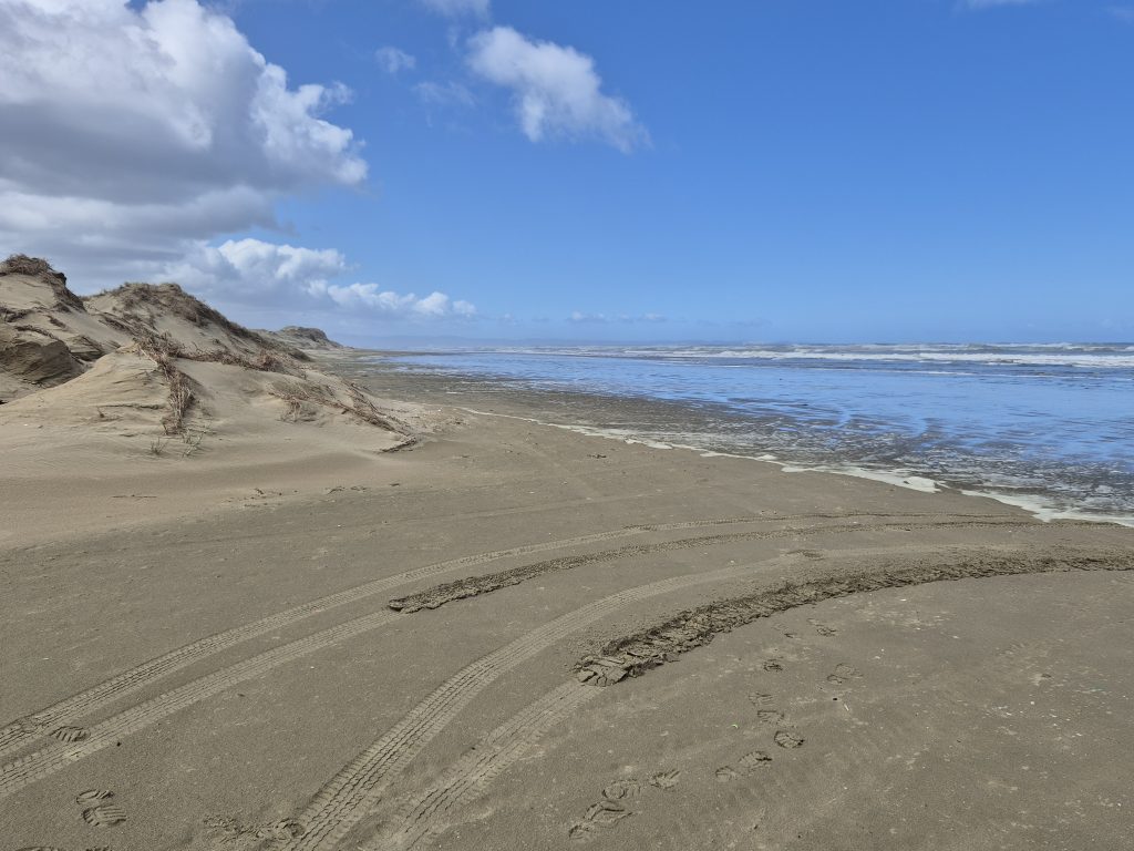 Jeg gik alene. Sara går på Canada tid. Hun er sikkert smuttet klokken 5. Jeg mødte en hundelufter, som hilste ‘good luck’ og lige før Ahipara ved enden af stranden indhentede jeg Lucas.