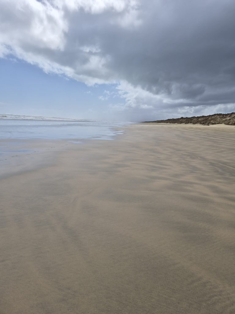 Efter en overraskende god nattesøvn var jeg klokken halv ni klar til at nyde de sidste 15 kilometer af 90 Mile Beach. Den er et bekendtskab af den slags, som ikke er uden omkostninger, men al sliddet værd.
