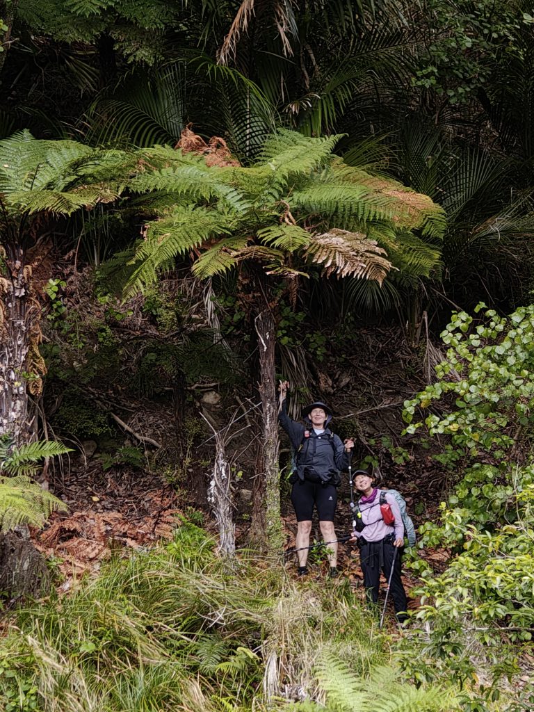 Ved ankomsten til Puketi takkede vi (stadig i solskin) hinanden for selskabet. Vi var begge glade for dagens forløb og for ikke at have været alene på etapen. Det viste sig hurtigt, at vi ikke var de eneste, som havde tabt sporet flere gange, men alle var glade. Lettelsen over at have afsluttet et par af TA’s mest krævende etaper påvirkede stemningen positivt.