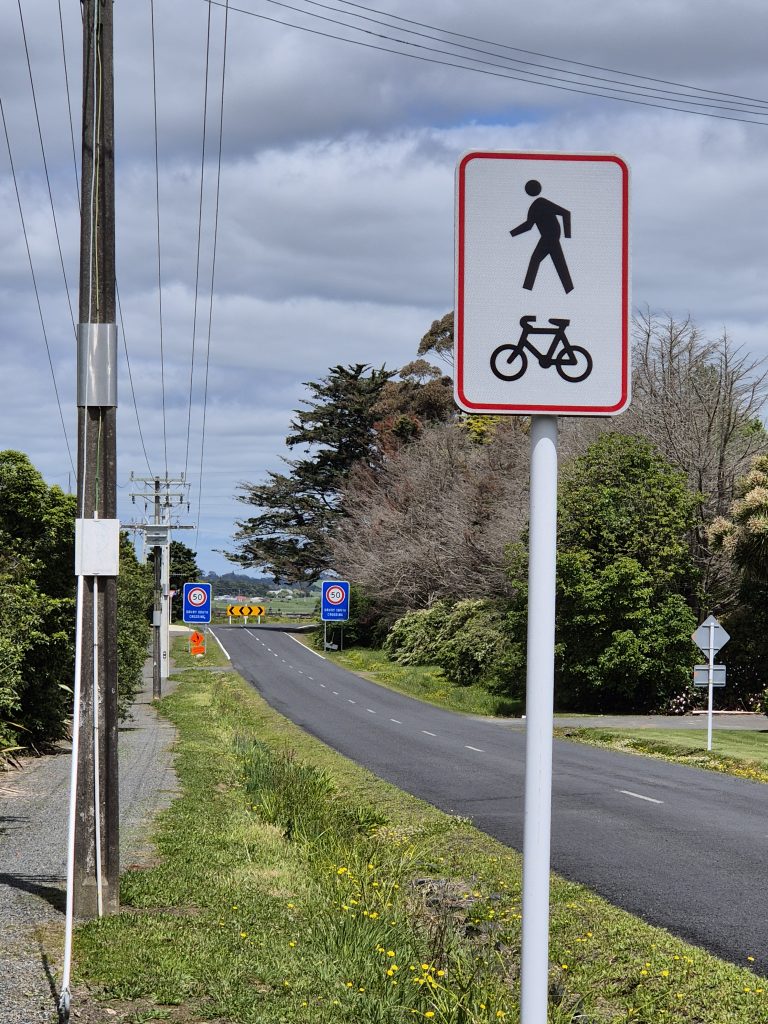 Dagens eventyr var ikke forbi. Jeg krydsede min første jernbane og lige da jeg ‘klikkede’ for at tage et billede varslede lamperne at toget var på vej. Kiwi Rail!