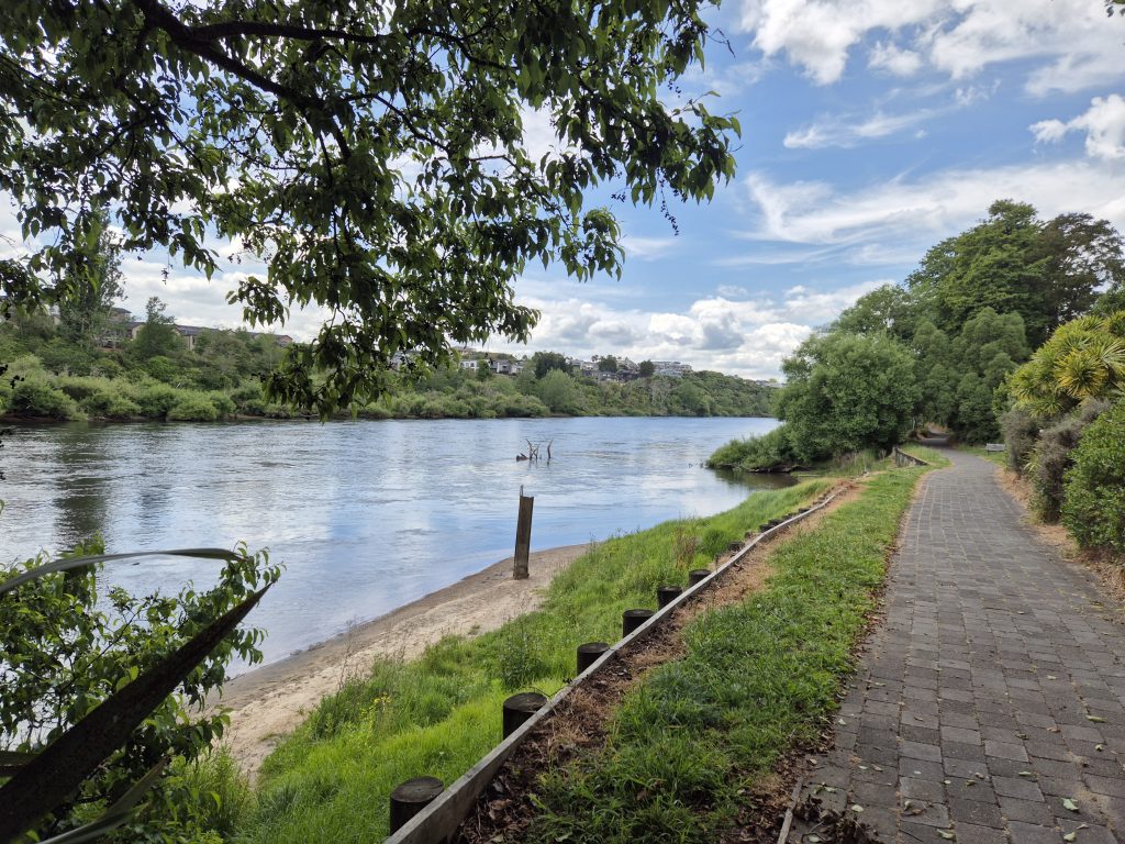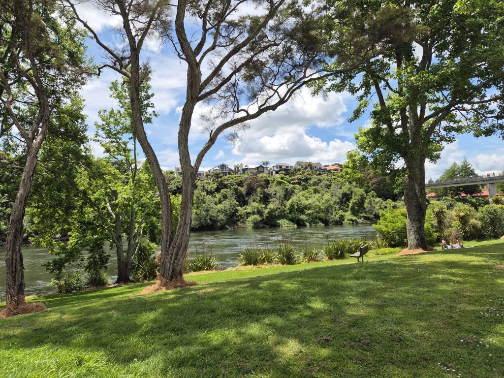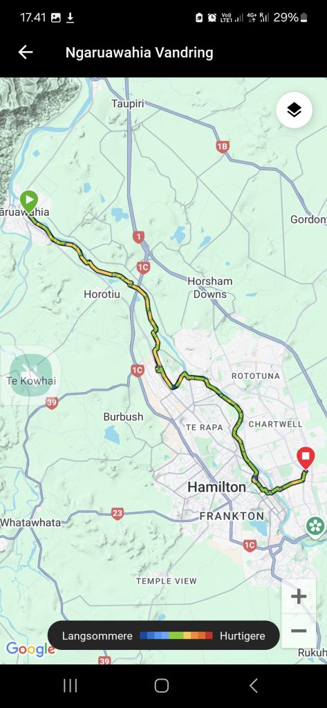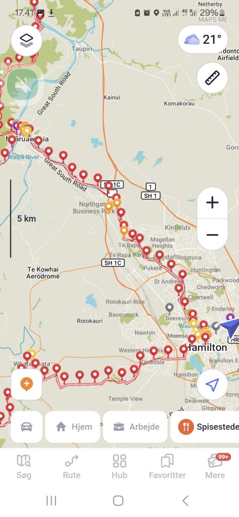Efter Whatawhata blev det mere bøvlet. Turen gik langs Waipa River. Der var grønne ujævne marker, halvtrætte steler og det var en lille skattejagt at finde afmærkningerne.
