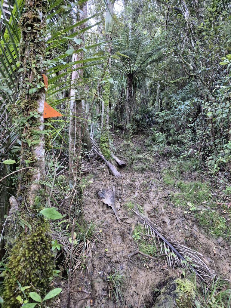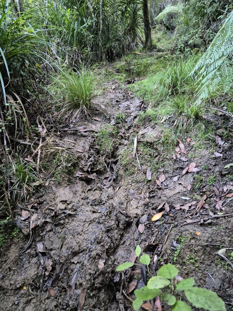 Reatea Forest var ualmindelig smuk. Grøn og regnskovsagtig og med de skønneste eksotiske fuglelyde. Men prisen for at se den, er et vanvittigt antal højdemeter af mudrede stejle stier.