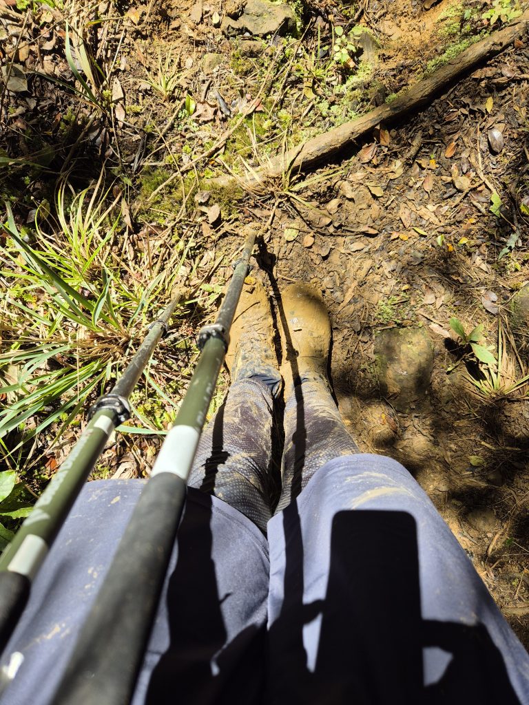 Jeg brugte virkelig mange kræfter. Det gik op, op, op. Det gik langsomt. Jeg prøvede at være forsigtig, for at undgå at falde eller at forvride et knæ. Men mudret blev jeg.
