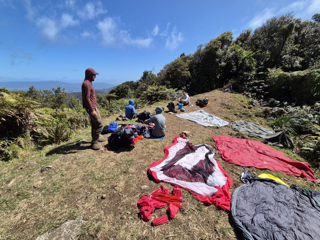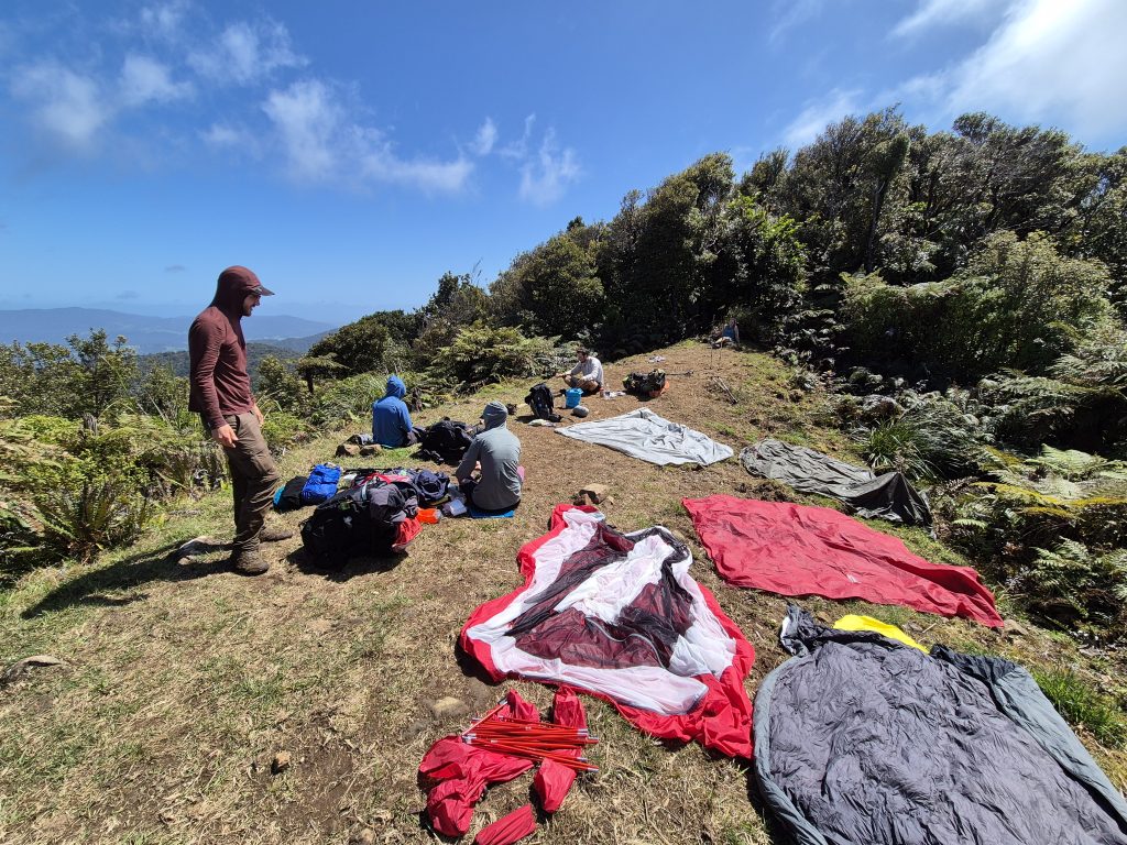 Ved frokosttid var vi en god håndfuld, som nåede toppen. Vejret var godt og udsigten upåklagelig. På toppen kunne vi hvile os i græsset og tørre teltene. Pausen varede cirka tre kvarter. Da vejrudsigten truede med regn næste dag, og tidsplanen var ok, valgte jeg at starte nedstigningen. Jeg var den sidste, som forlod pladsen. Kun et par vandrere var bag mig. De overnattede på toppen. Det ville jeg gerne undgå, fordi jeg var smurt ind i mudder og der ikke var nogen vandforsyning.