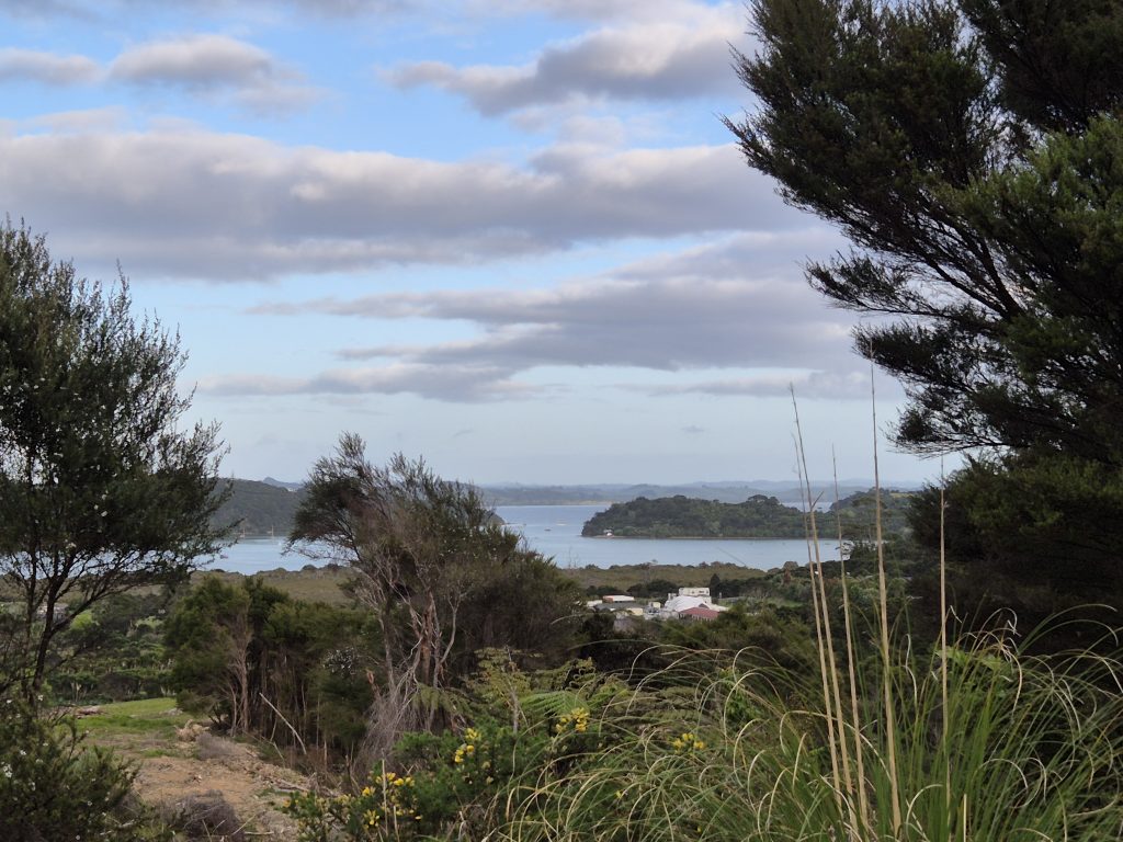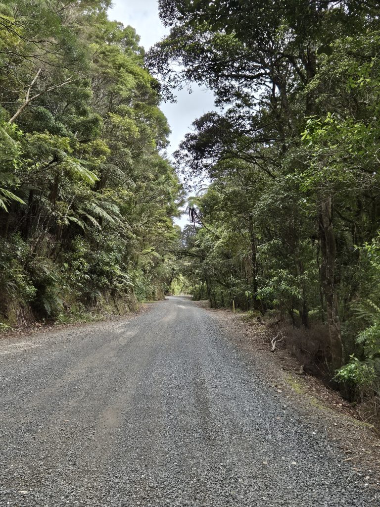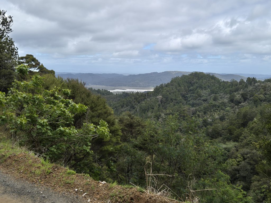 Klokken syv puttede jeg nøglen i postkassen og satte kursen mod sydøst. Først et par timer af en landevej og så et længere stykke af en fredelig snoet grusvej. Her gik det først opad i halvanden time og så ned igen. Omgivelserne var smukke. Mangrove, skov, udsigt til bugten, marker og mere skov.