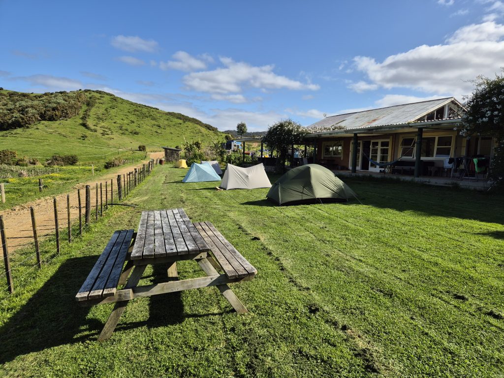 Dagens tur var 24 kilometer, men de var hurtigt klaret. Halv to var jeg ved The Farm, som ligger tæt på km 282. Et sted, hvor mange stopper. Her er god plads, brusebade, stort køkken, stor have og masser af små kroge, hvor man kan sidde.