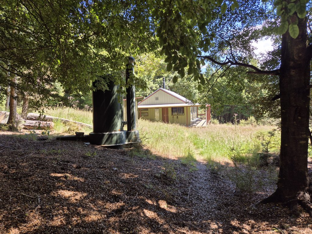 Efter kort tid passerede jeg Beiley Hut. Jeg kunne høre stemmer, så der var gæster i hytten.