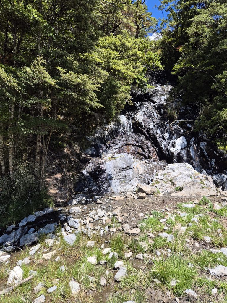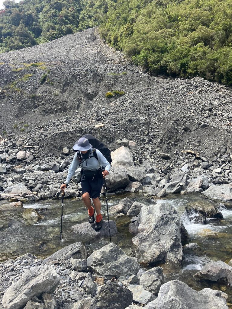 I nærheden af Morrisson Footbridge holdte vi en kort pause før vi tog hul på Mingha – Deception Track, som også kaldes ‘Goat Pass Route’.