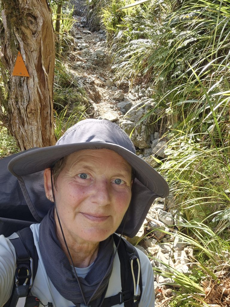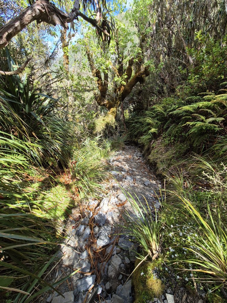 Efter Harper Bivy gik turen op til Harper Pass i 962 meters højde. Stien var mere ufremkommelig end tidligere på dagen, men det var småting, hvis vi sammenligner med nedstigningen efter passet. Stien var stenet eller mudret og meget stejl. Nogle af ‘trinene’ var en meter høje. På visse steder var der samtidig smalt og langt ned.
