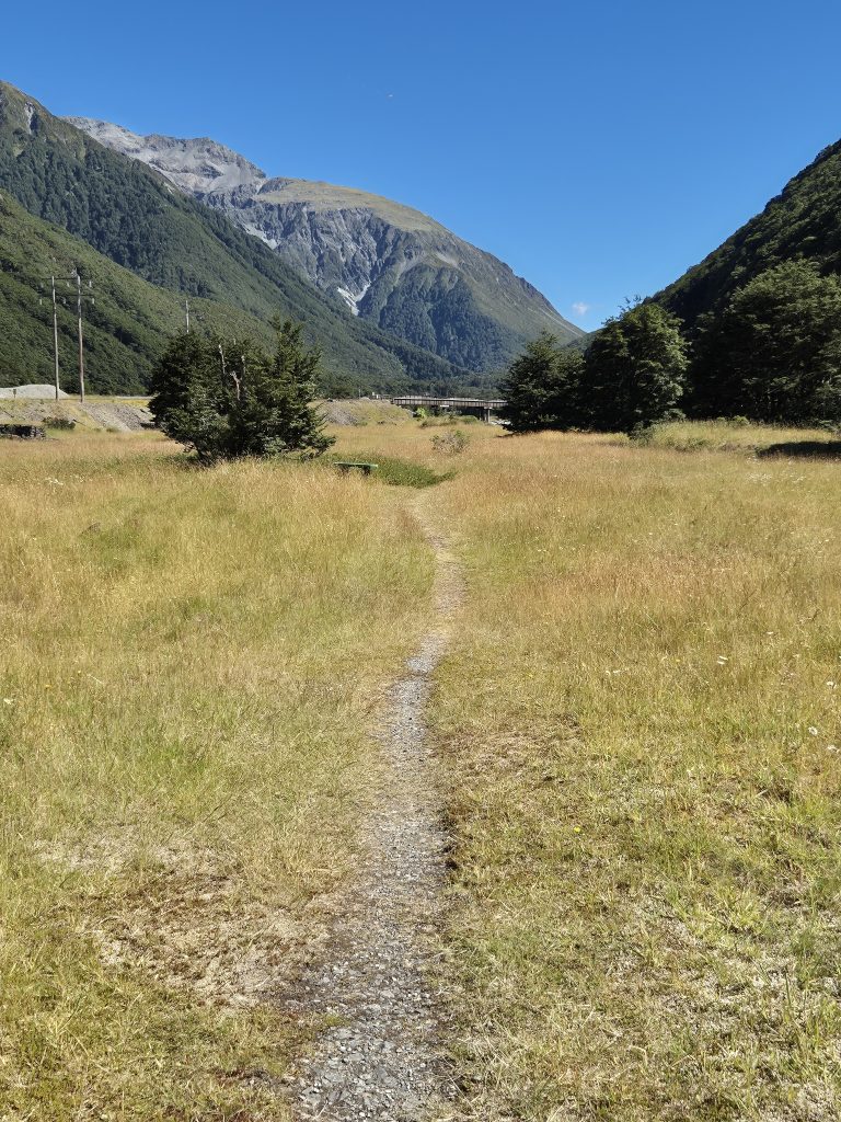 Jeg havde ugen før lavet en aftale om at låne en lille hytte i Arthurs Pass. Det viste sig at være en god ide, for al budgetovernatning var optaget. Jeg kontaktede min vært og fik nogle instruktioner. Lea og jeg fandt den rette sti og gik ud til hytten, som ligger lige ud til Bealey River.