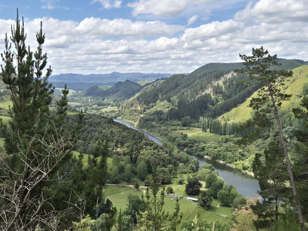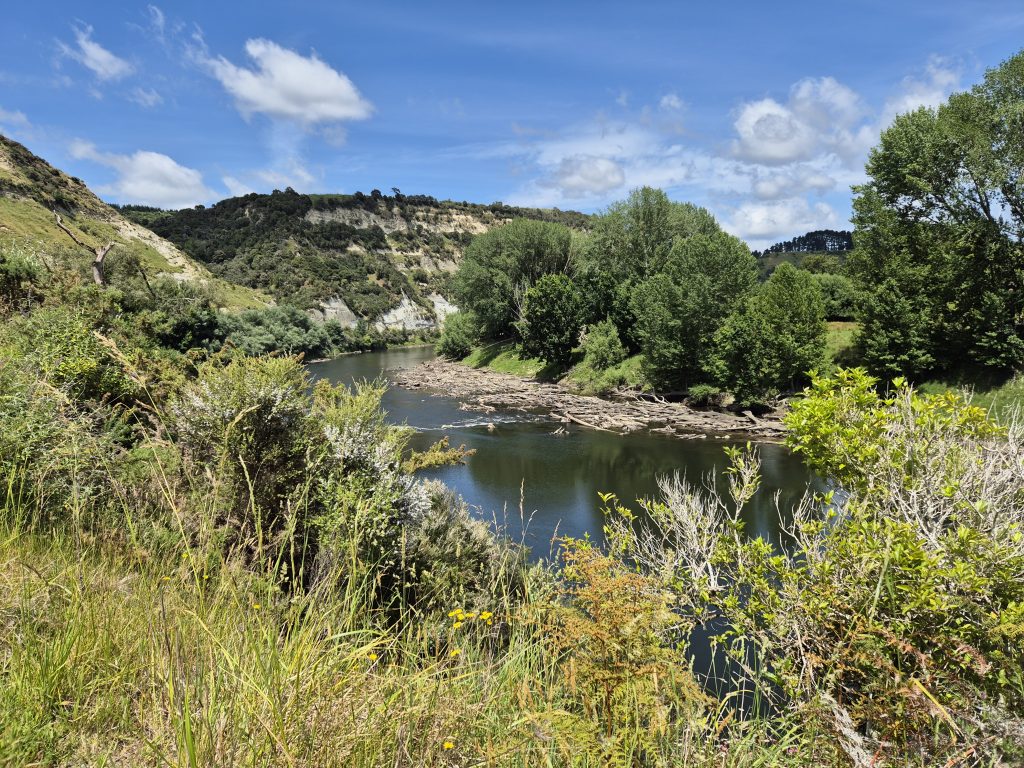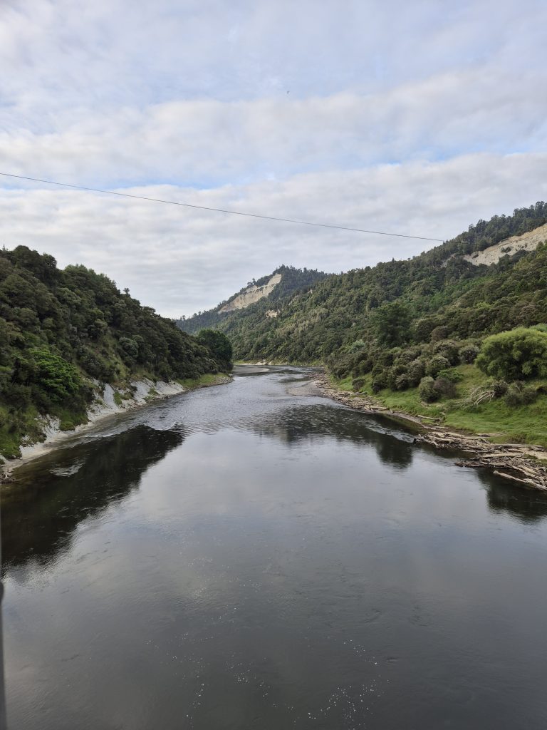 Klokken ti var der afgang. Jeg skulle igen følge vejen langs Whanganui River. Det var stadig overskyet, og det var en behagelig tur.